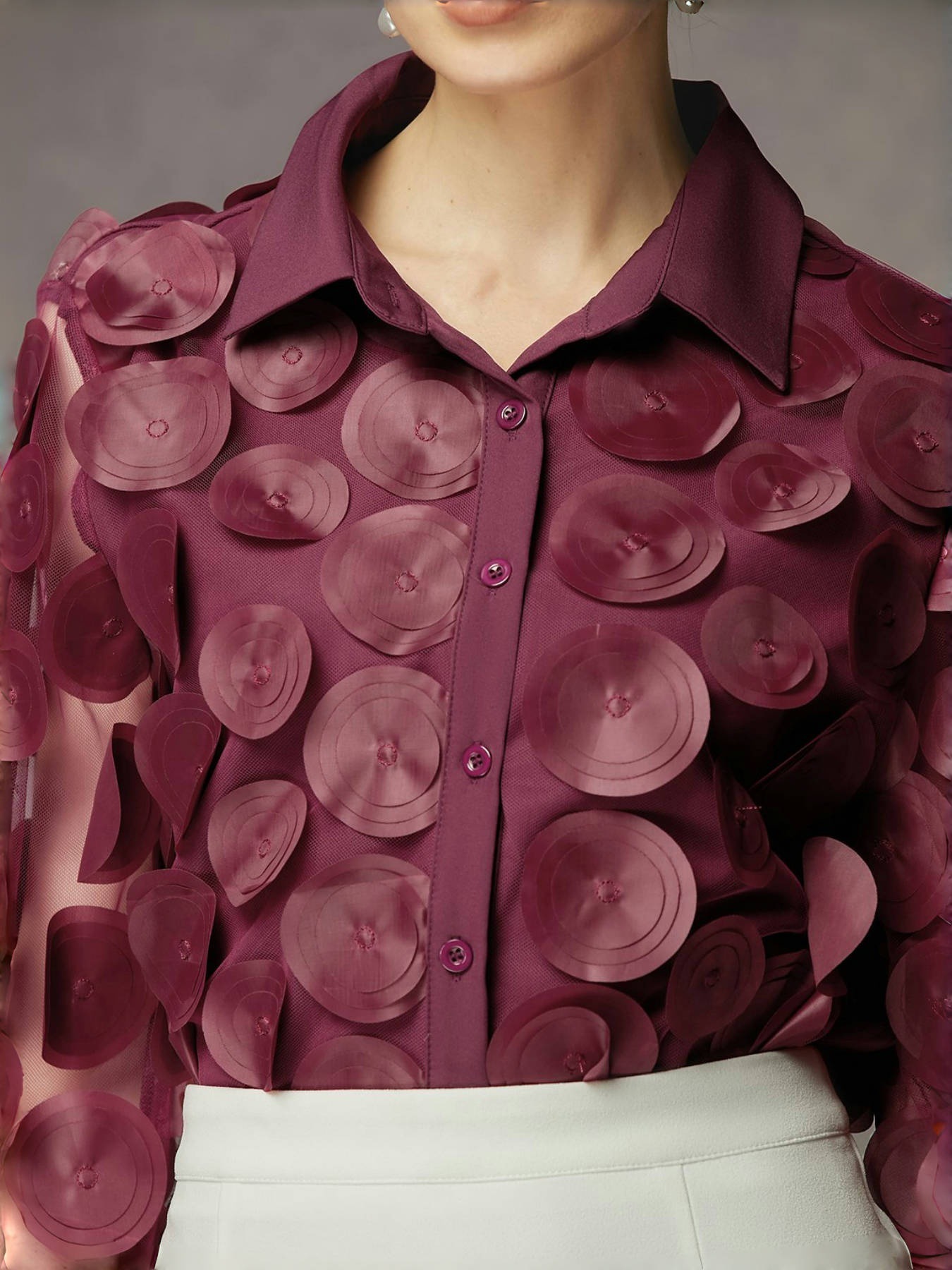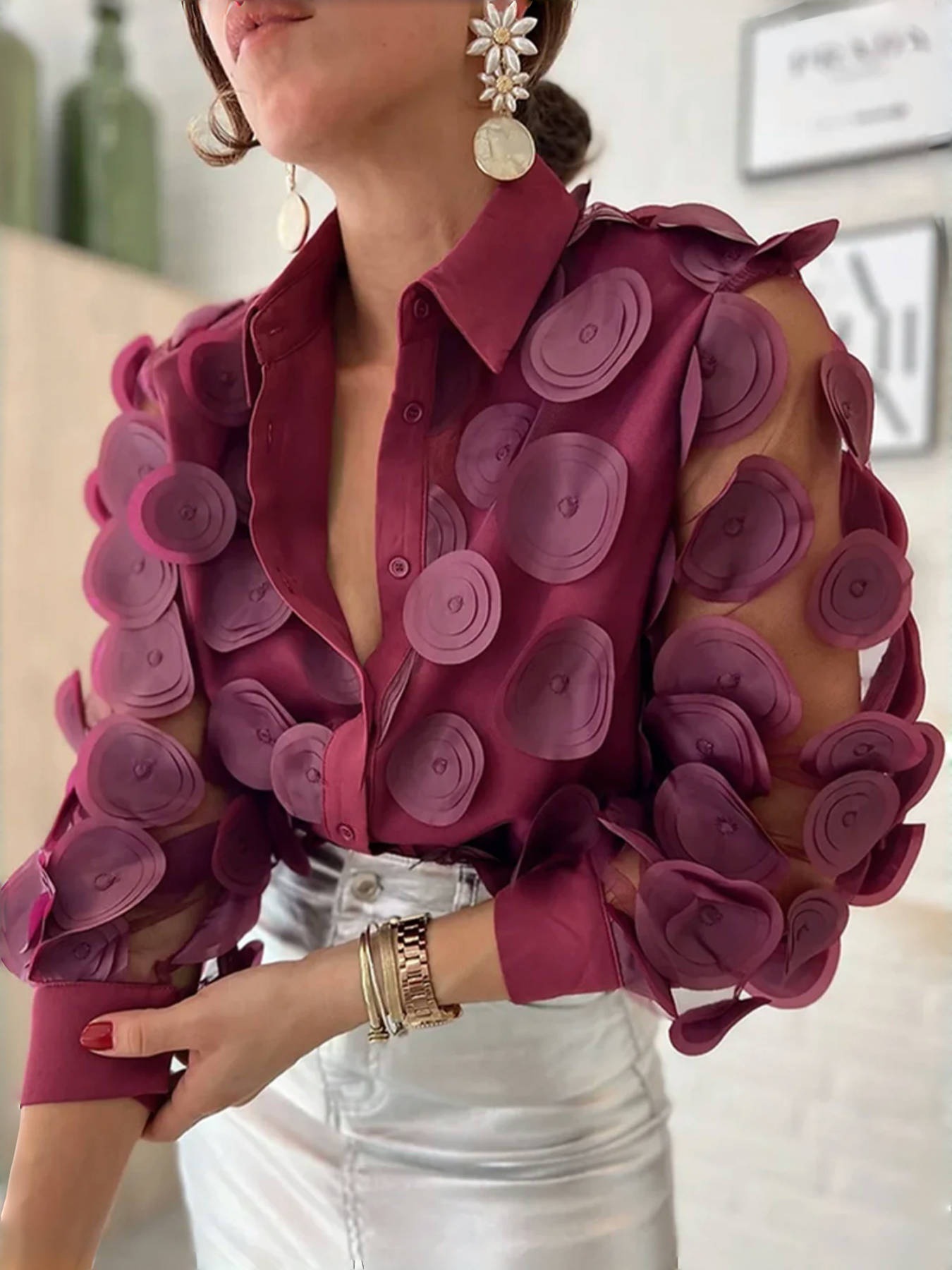 Mesh Long Sleeve Shirt French Style Elegant Blouse